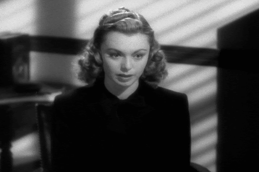 In the Double Indemnity shot starring Lola, she is sitting in Walter Neph's office expressing her concerns to Walter over her father's death. Lola, like many other film stars throughout history, is a pretty blond girl. This gives Lola a more innocent features, as well as makes her look more like the stereotypical vulnerable woman. In addition, the bright lighting from the outside and her all black dress serve to further highlight her innocence and beauty. The black dress is bland and boring, forcing you to glance up at her face that is a sharp contrast to the dress. Furthermore, the lighting from outside hits her face and the wall directly behind her. The lighting seems to brighten her blond hair to make it seem even more beautiful than before while also the lighting behind seems to give her a holy-like appearance to further display her benign nature.